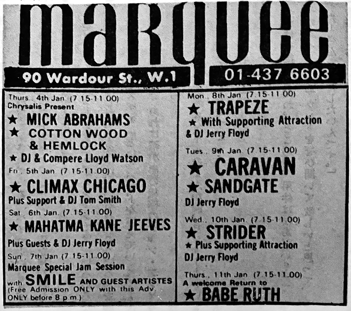 • January 7th & 20th, 1973 also at the Marquee, billed as Smile rather than Queen.