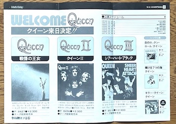 Features more photos from Queen's visits to Japan in 1975 and 1976, plus info on their recent UK tour and shots from Ridge Farm. Came with at least one double-sided pull-out poster.