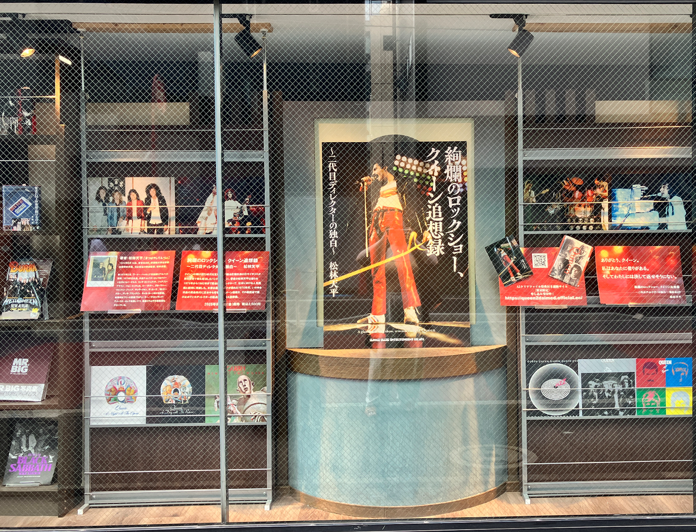 A Night at the Opera 50th Anniversary display in the window at Shinko Music Annex in Kanda, Tokyo, 2025.